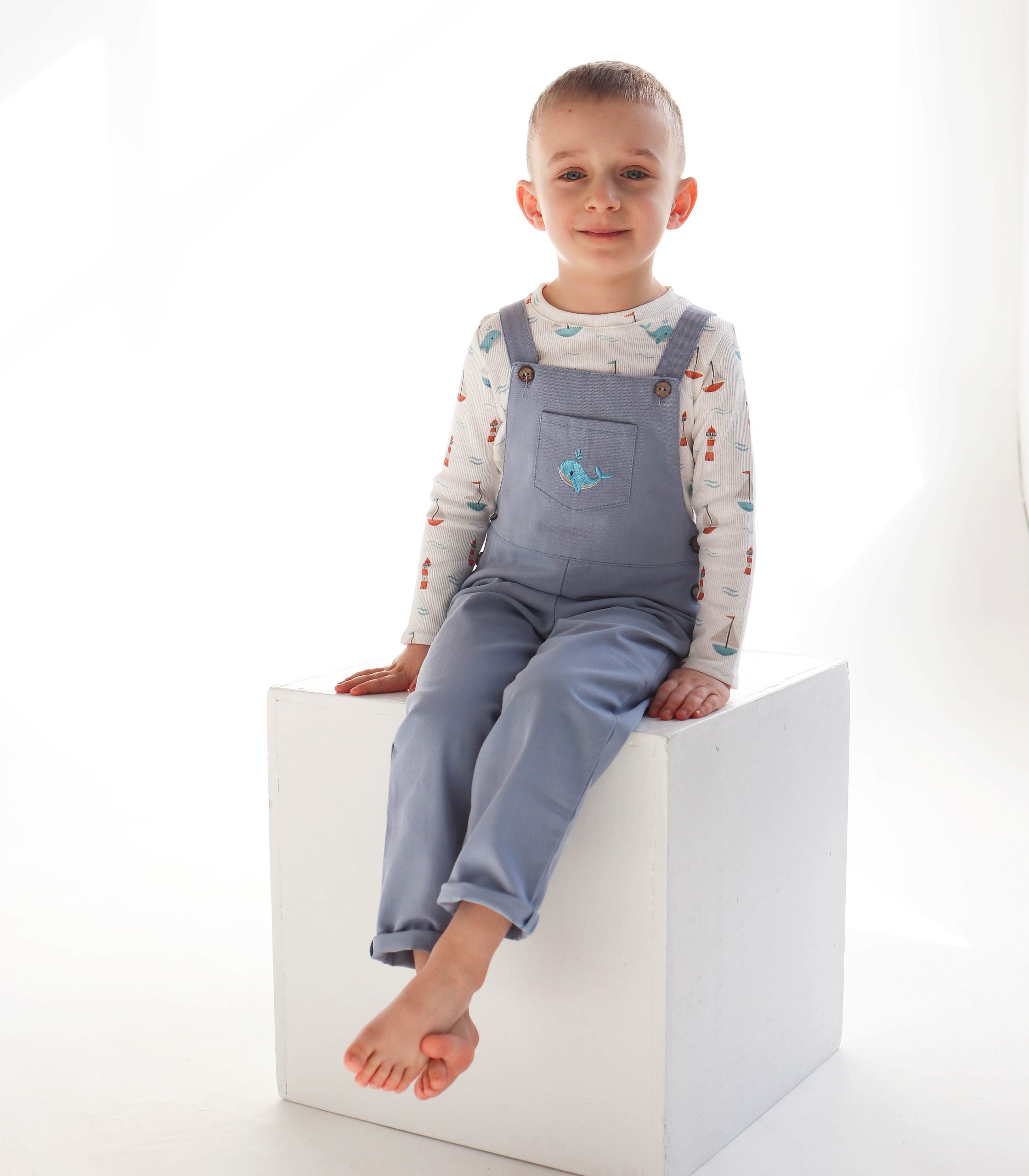 Комбінезон має зручний крій, не сковує рухів і легко одягається завдяки ґудзикам на бретелях та з боків. Спереду розташована кишенька з милим декоративним елементом. Лонгслів виготовлений з м’якої, приємної до тіла тканини з ніжним принтом.