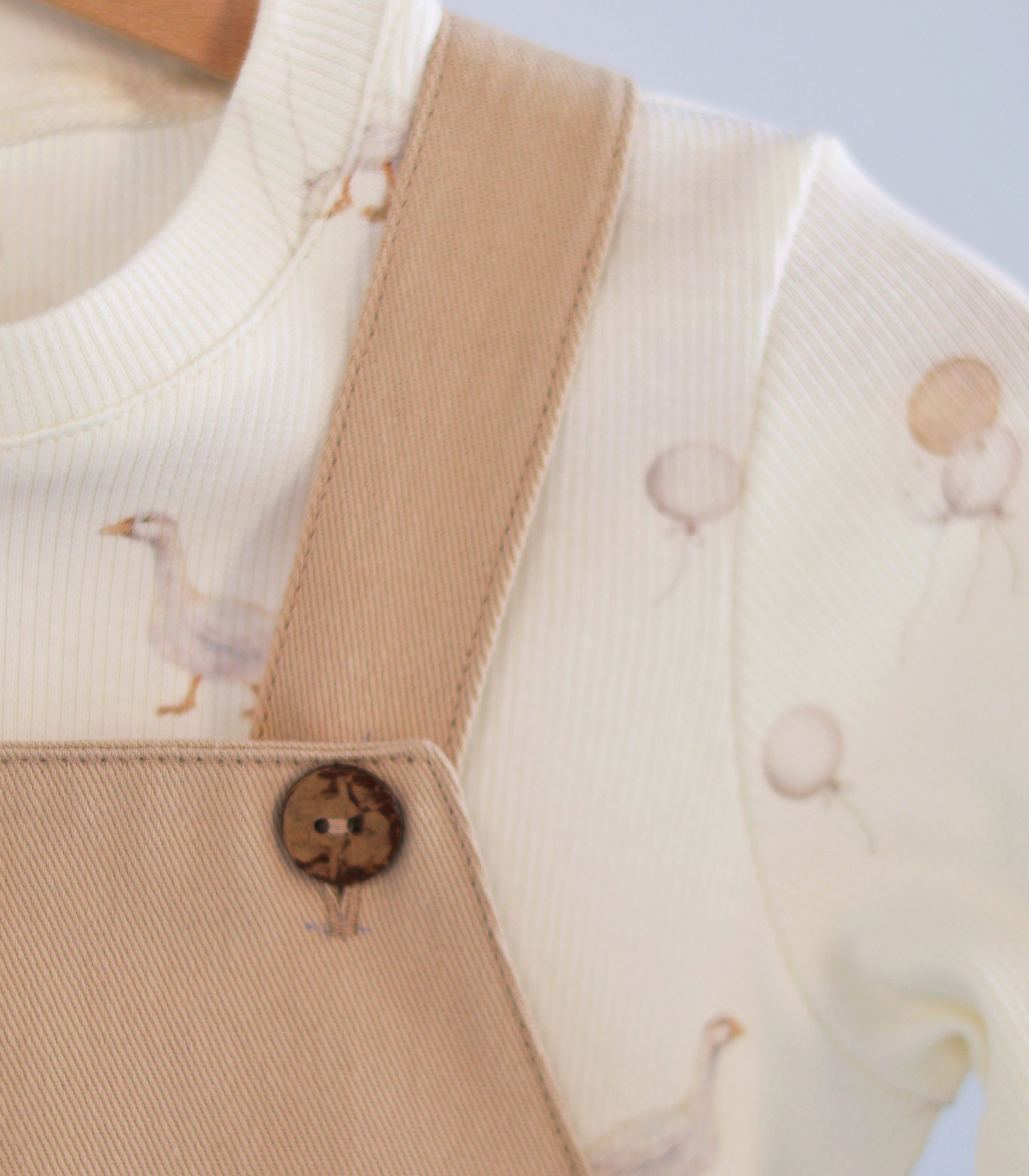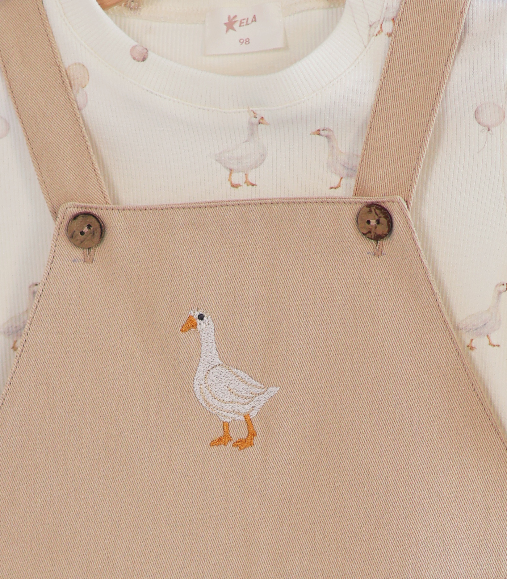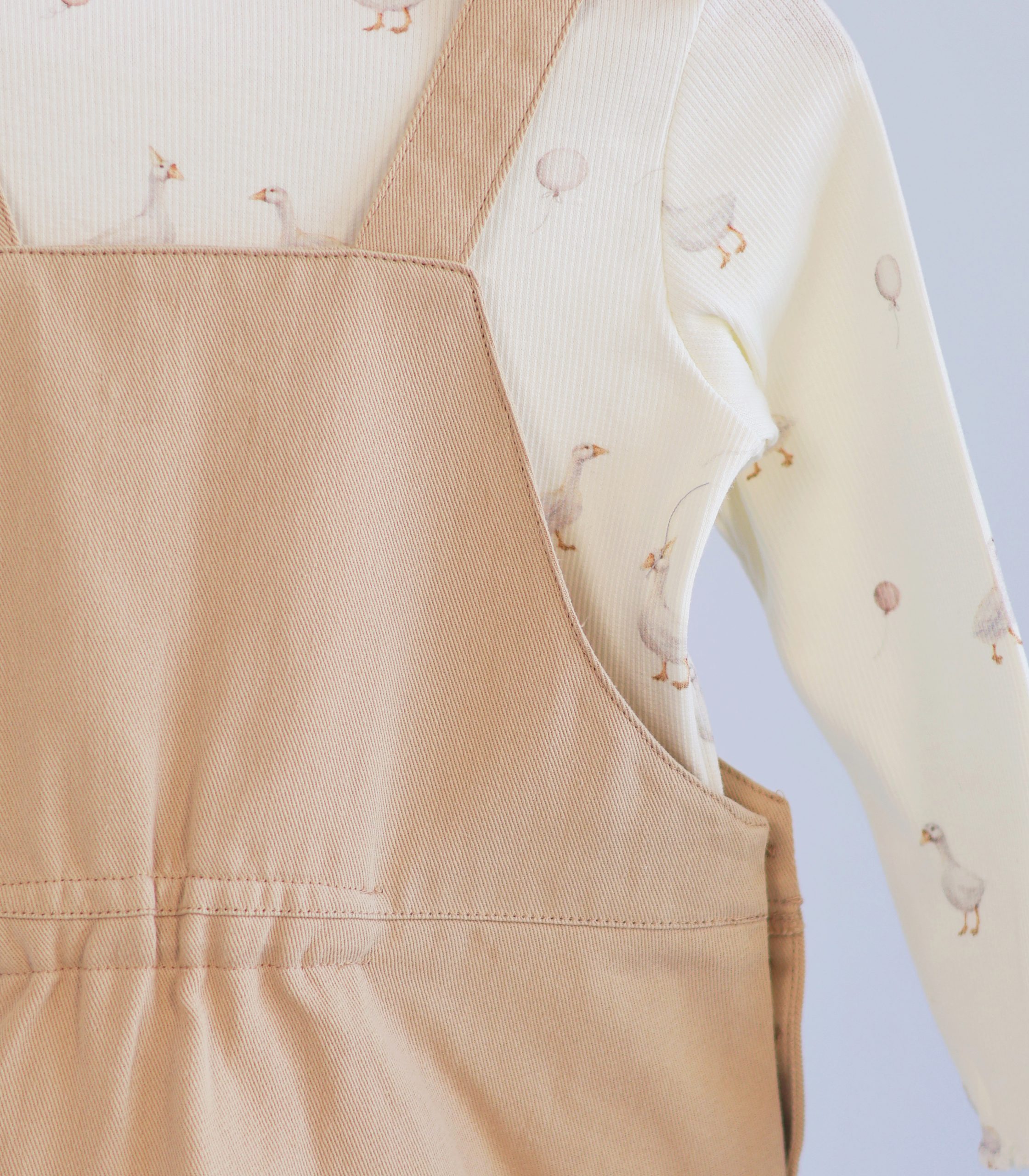 Лонгслів молочного кольору з дрібним принтом гармонійно доповнює сарафан. М’який, еластичний матеріал забезпечує комфорт протягом усього дня та не сковує рухів дитини.