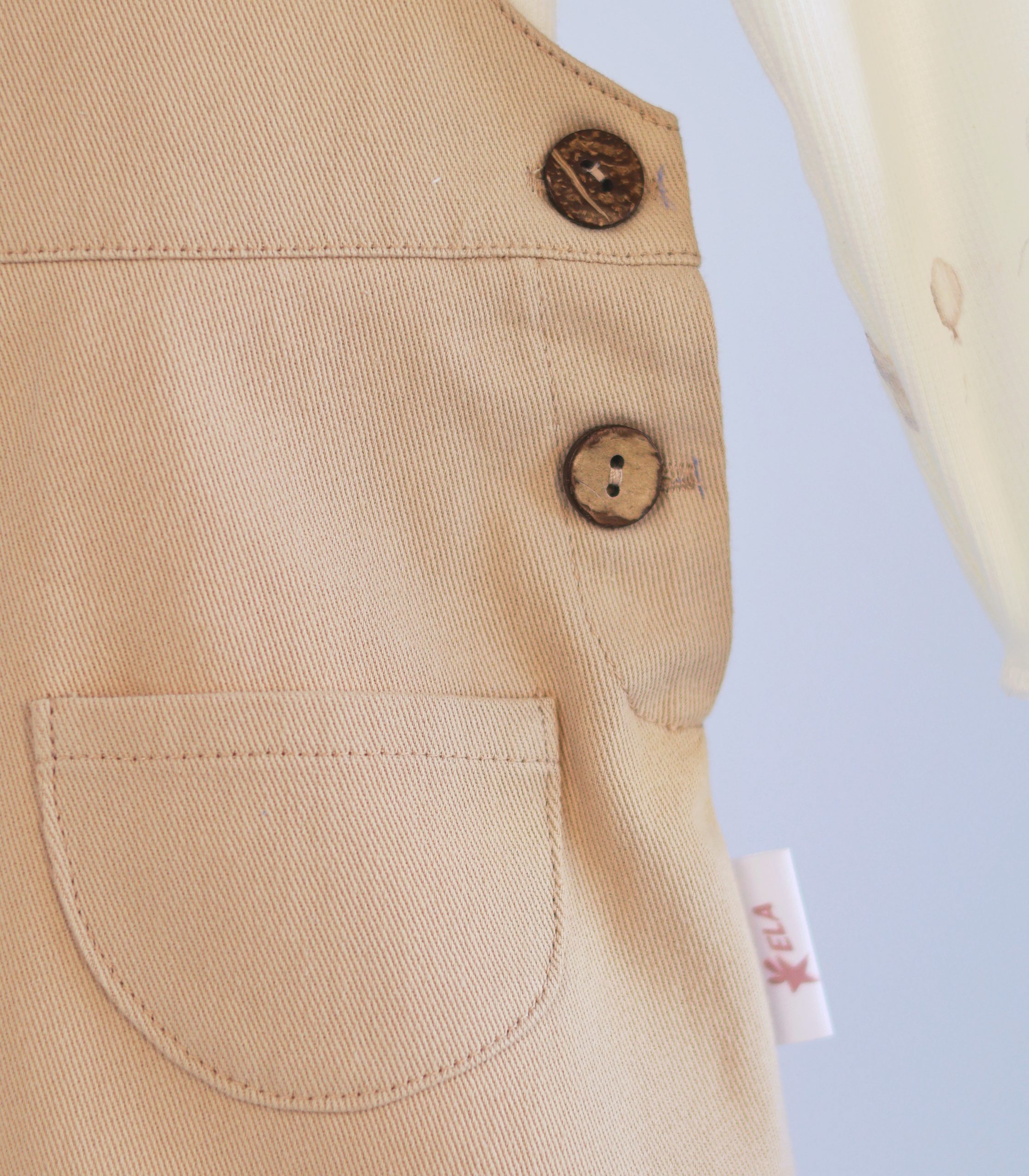 Сарафан виконаний з приємної на дотик тканини – джинсу, має зручний крій, декоративні ґудзики та милу вишивку. Дві накладні кишеньки додають образу чарівності та практичності.