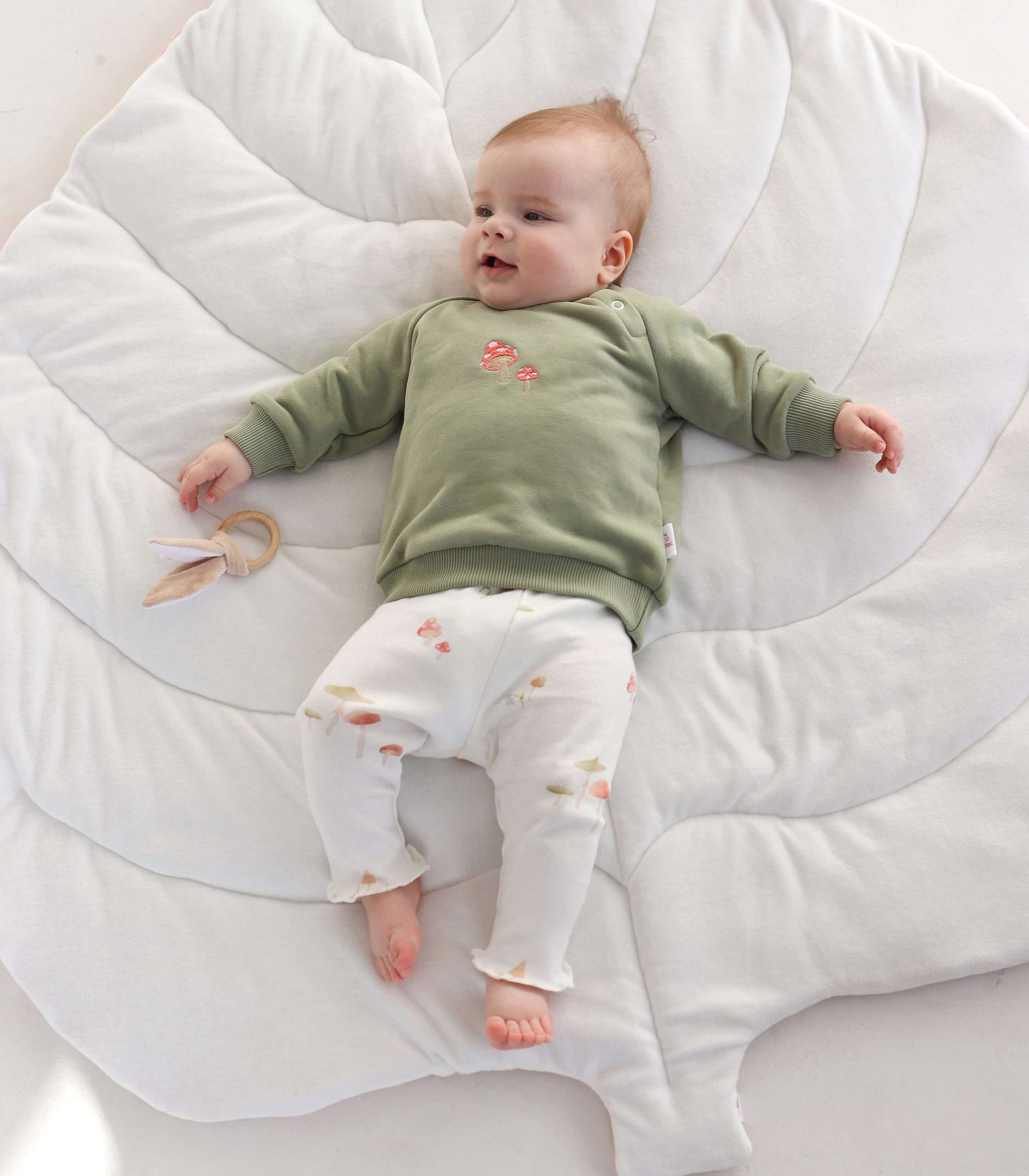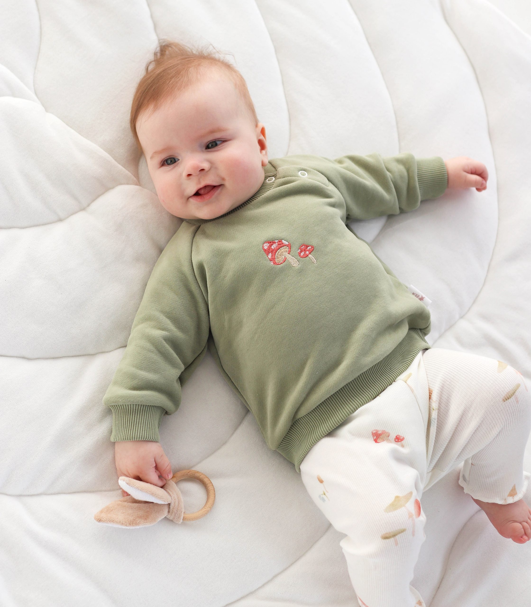 Ніжний та стильний костюм для найменших, який ідеально підійде для щоденних прогулянок, дому чи в гості. Комплект складається зі зручного світшота та м’яких легінсів, виконаних у спокійній натуральній гамі.