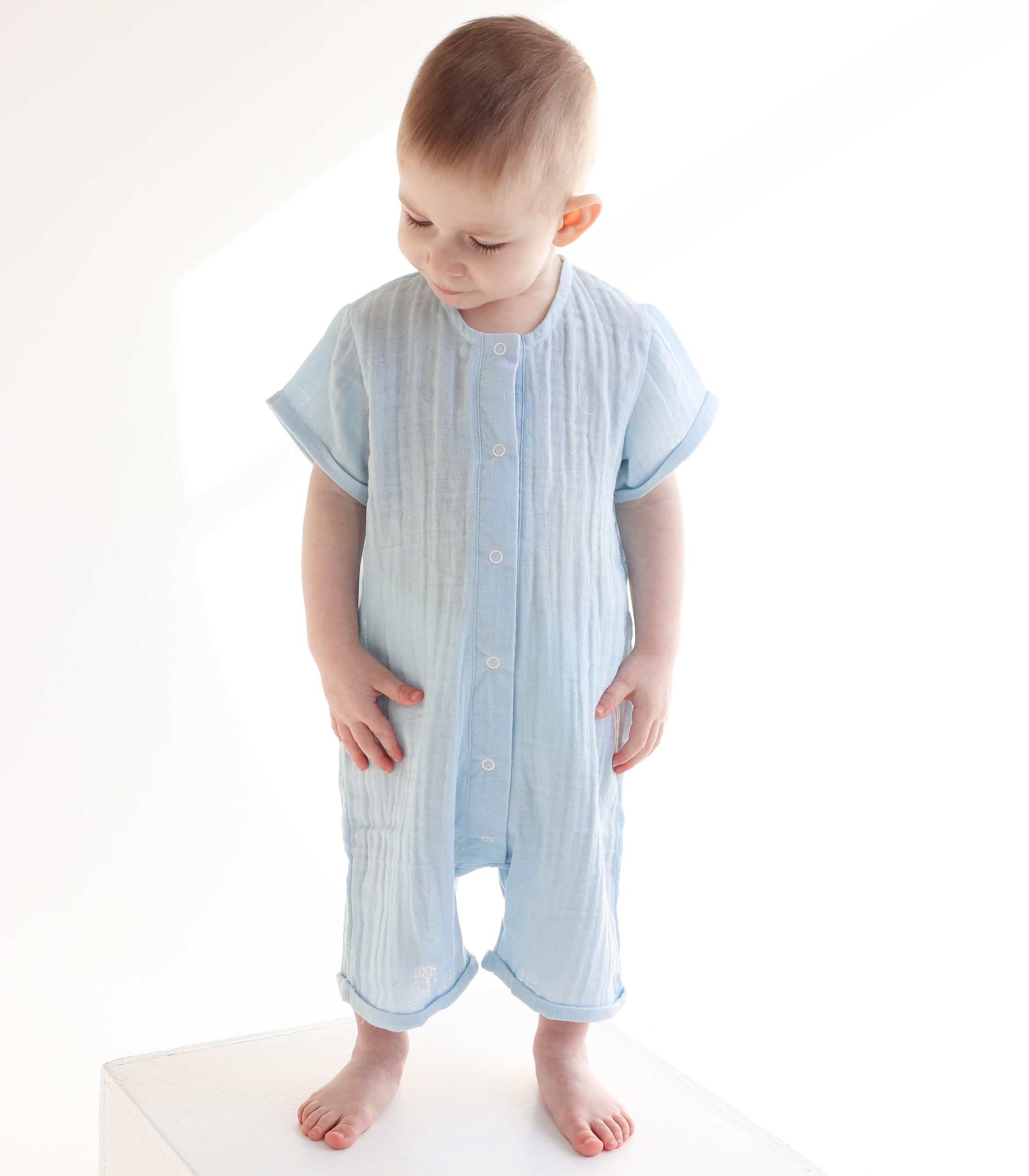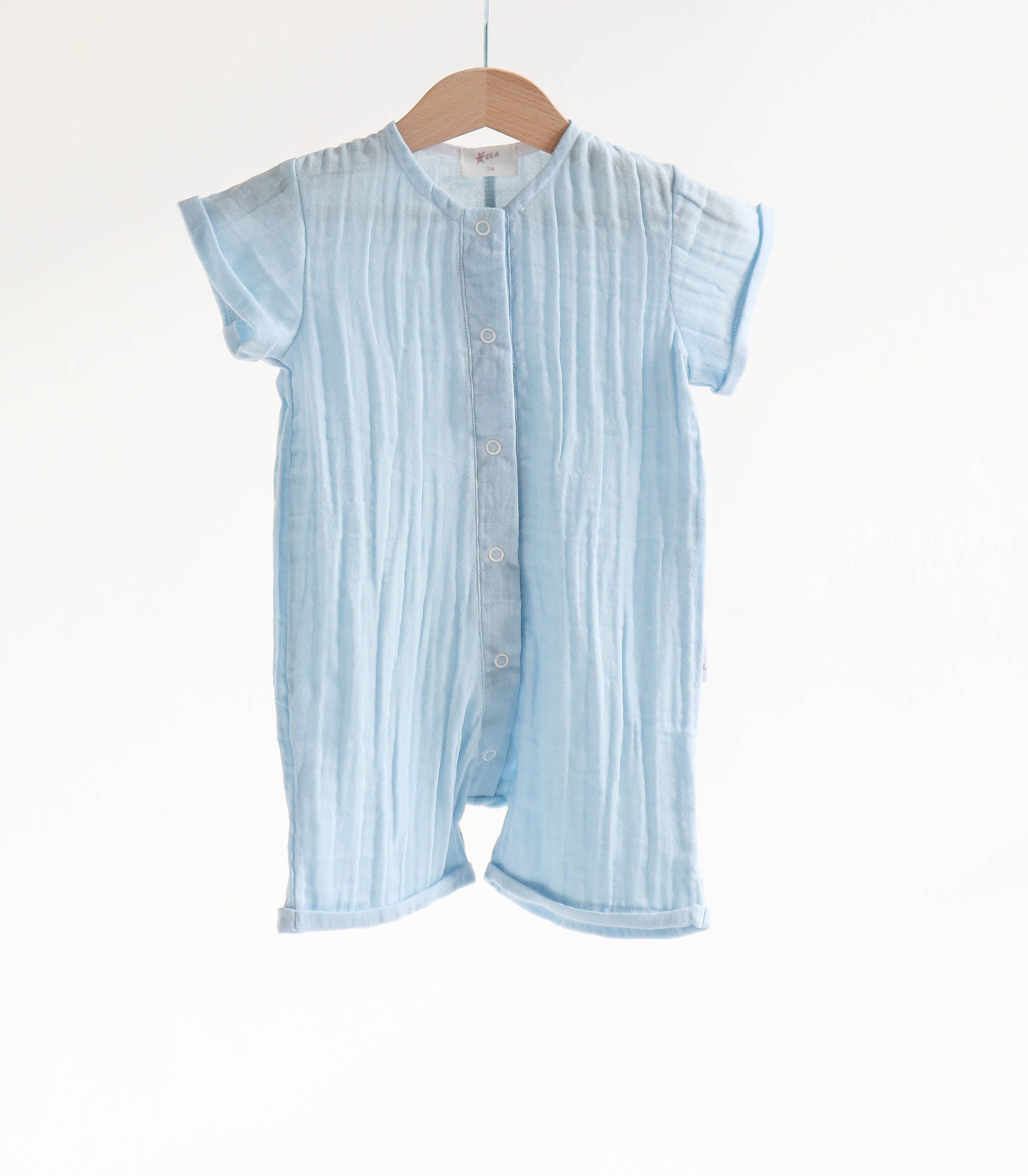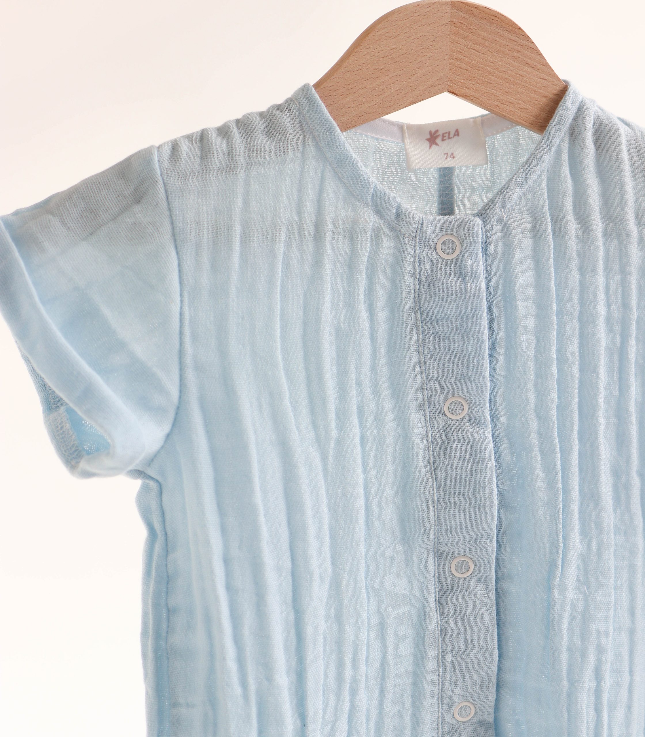 Легкий, дихаючий і надзвичайно м’який до тіла, цей ромпер створений спеціально для комфорту малюків з перших днів життя до 2 років. Натуральний муслін добре пропускає повітря, не перегріває шкіру дитини і водночас захищає її від сонця.