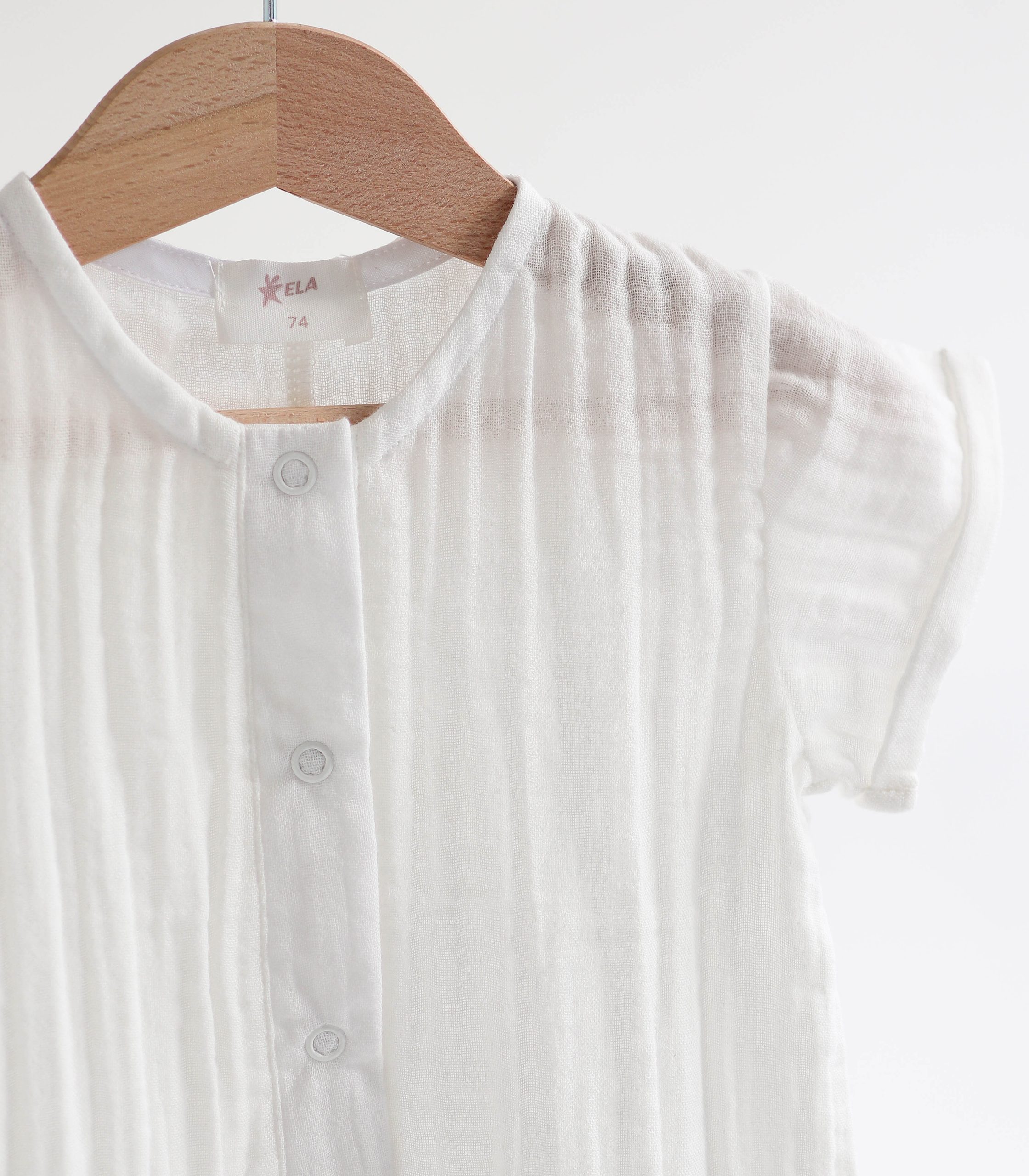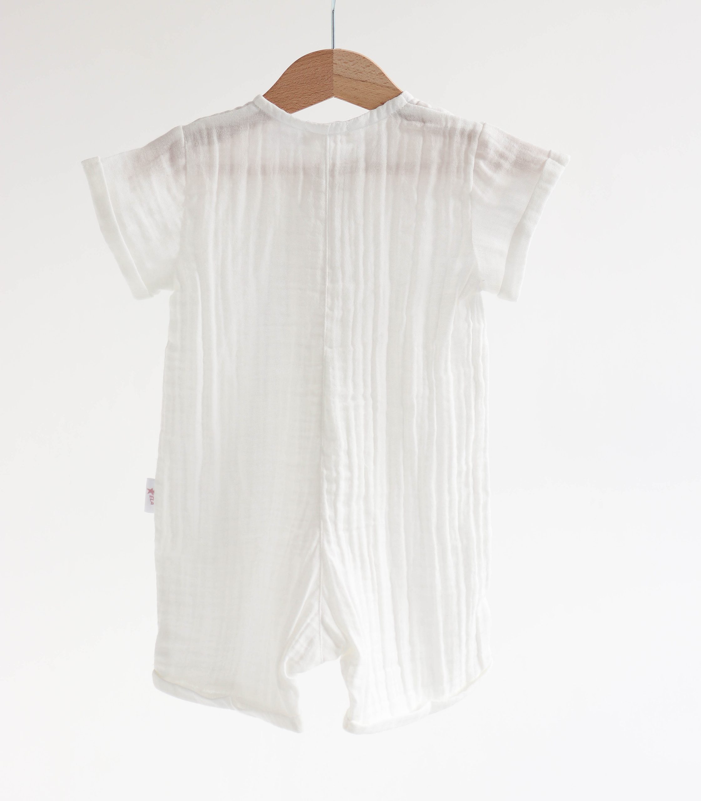 Легкий, дихаючий і надзвичайно м’який до тіла, цей ромпер створений спеціально для комфорту малюків з перших днів життя до 2 років. Натуральний муслін добре пропускає повітря, не перегріває шкіру дитини і водночас захищає її від сонця.