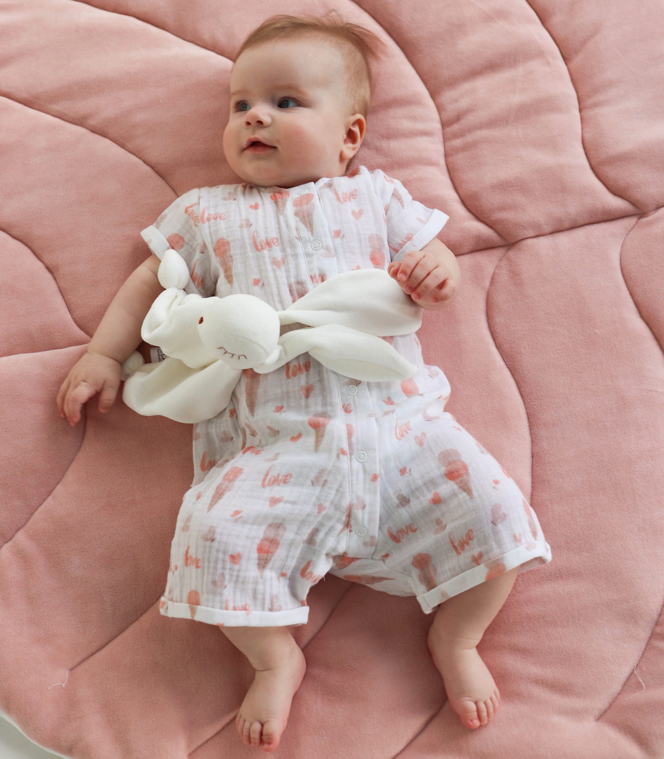 Легкий, дихаючий і надзвичайно м’який до тіла, цей ромпер створений спеціально для комфорту малюків з перших днів життя до 2 років. Натуральний муслін добре пропускає повітря, не перегріває шкіру дитини і водночас захищає її від сонця.