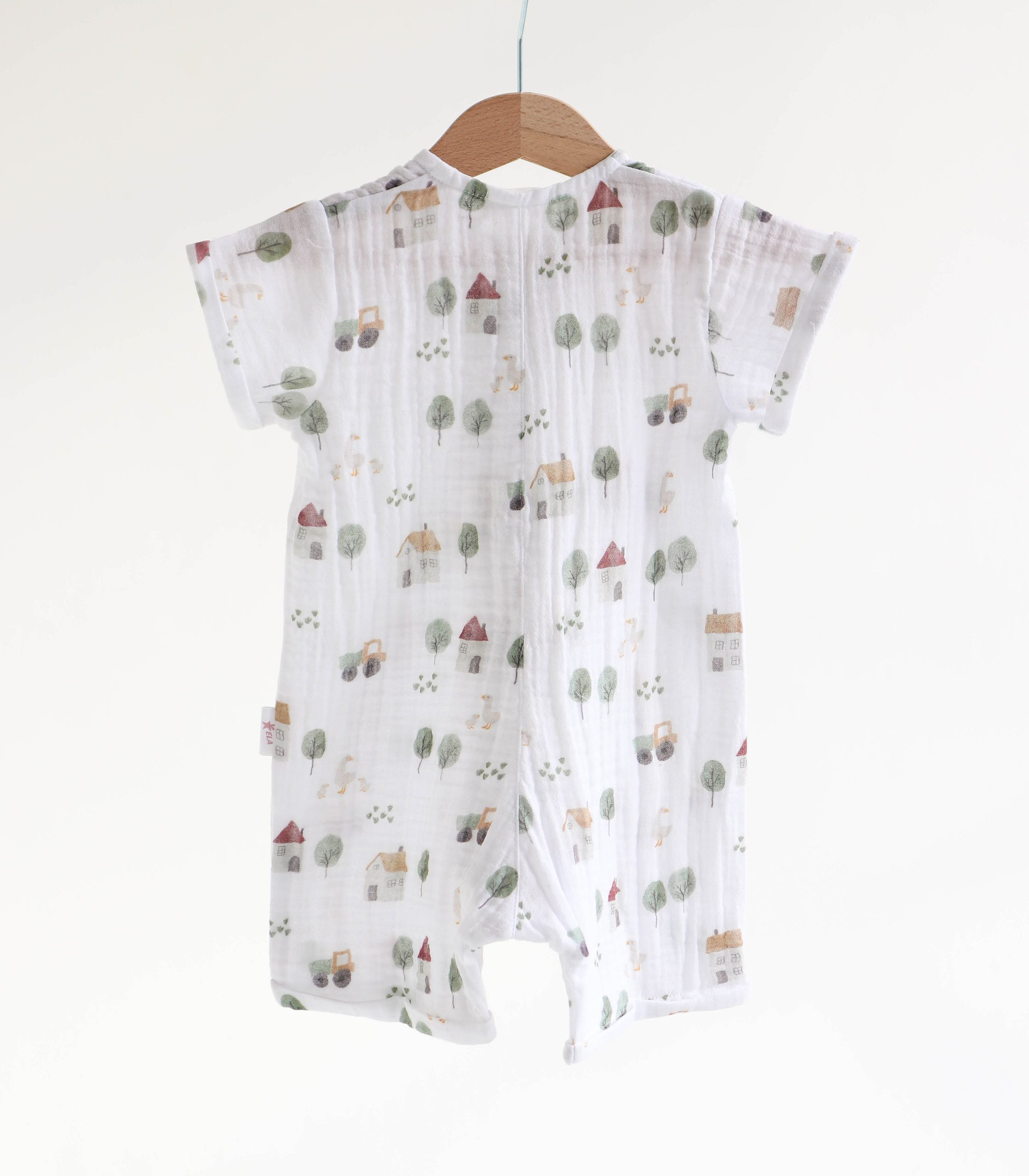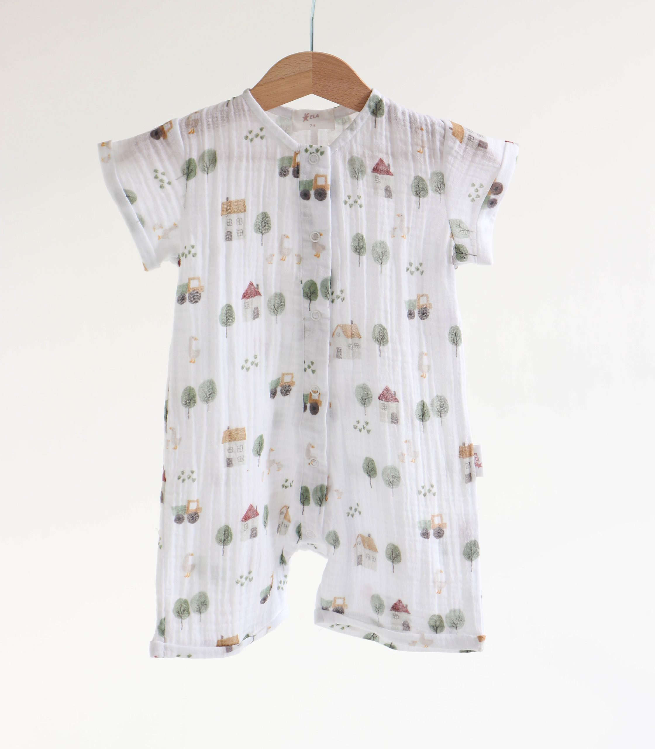 Легкий, дихаючий і надзвичайно м’який до тіла, цей ромпер створений спеціально для комфорту малюків з перших днів життя до 2 років. Натуральний муслін добре пропускає повітря, не перегріває шкіру дитини і водночас захищає її від сонця.